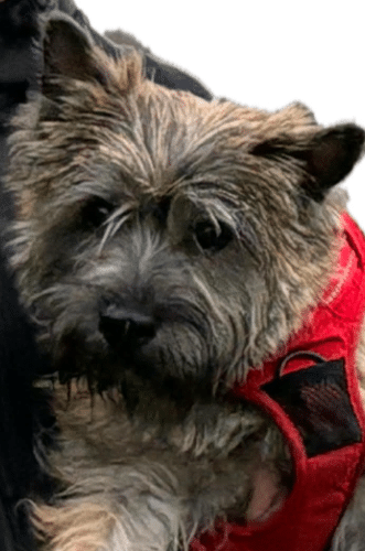 Scott er av rase cairn Terrier og farge Brindle. Alltid leken og i godt humør, Nomvecs maScott.